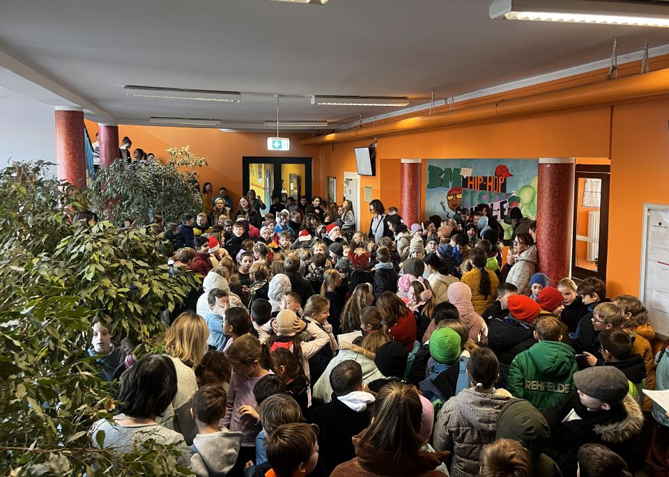 Schülerinnen und Schüler aller Jahrgänge zeigten eindrucksvoll, wie lebendig Gemeinschaft an unserer Schule ist. Das Miteinander von Grund- und weiterführender Schule machte das Singen zu einem besonderen Moment.